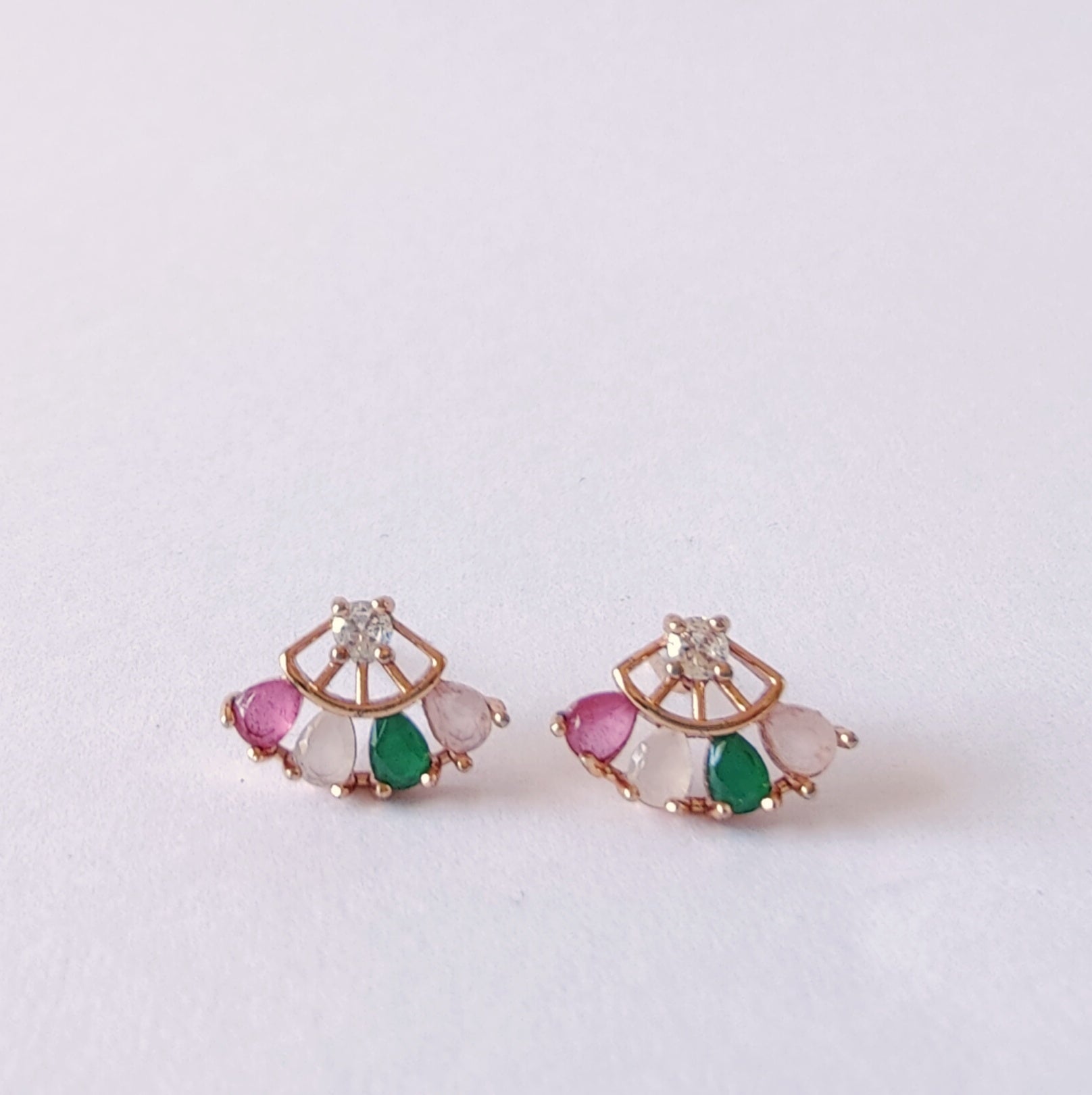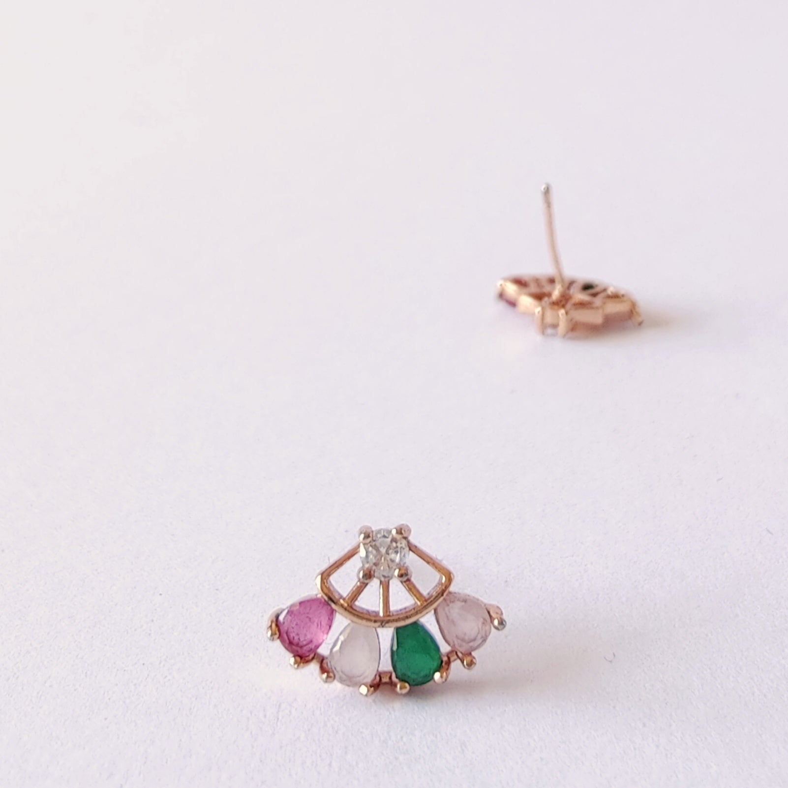 Introducing Fan of Colour, a unique fan-shaped earring crafted with colourful cubic stones. The sleek design and vibrant colors give you an eye-catching look to make a statement.