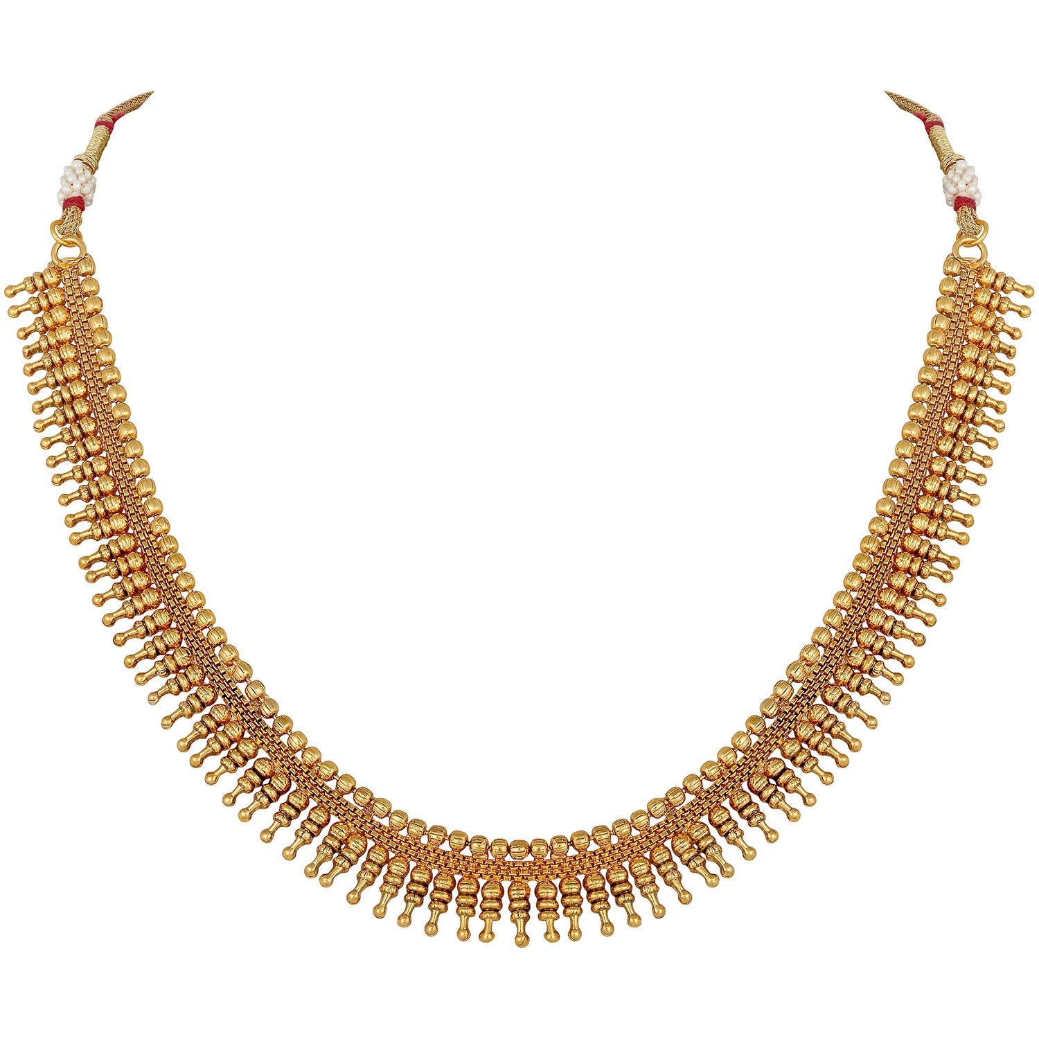 Keep it simple and stylish with our gold-plated, traditional golden necklace and earring set. This short necklace features a classic design that is perfect for any outfit with matching earrings. The drawstring closure enables the necklace length to be adjusted.
