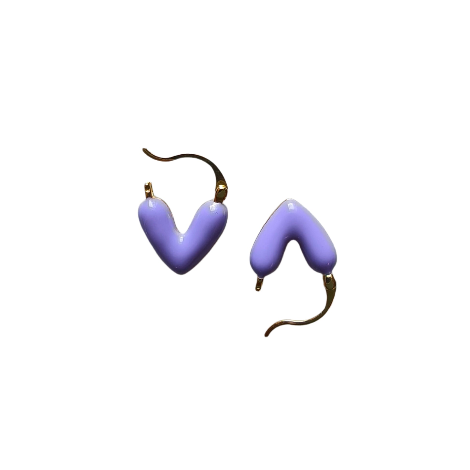 Add a pop of color to your outfit with our stunning Purple Heart earrings! Made with a vibrant purple enamel, these V or heart-shaped earrings are sure to catch attention.