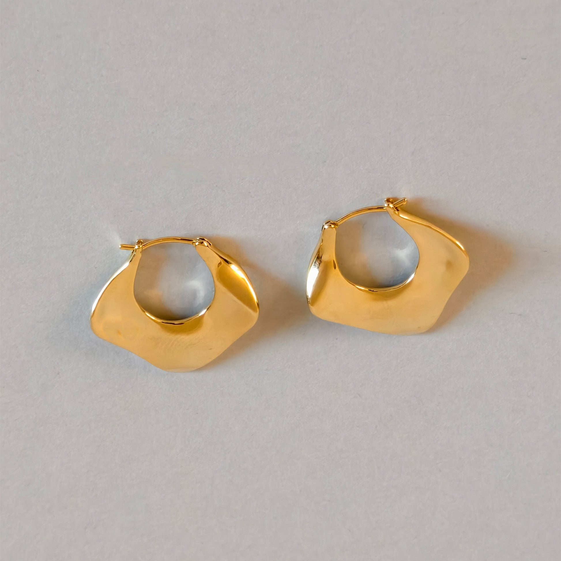 Experience the beauty and movement of the ocean with our Waves of Elegance earrings. Made of gold plated copper alloy, these earrings are expertly crafted, adding a touch of fluidity and grace.